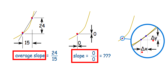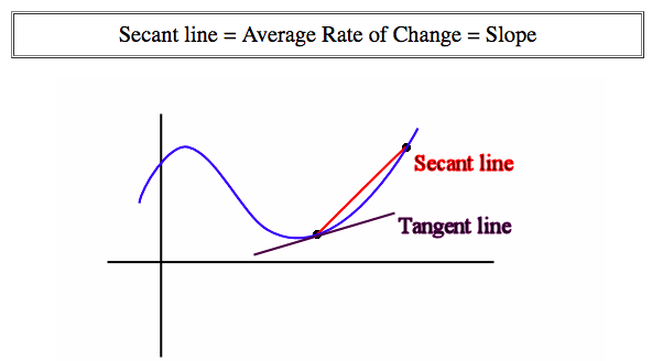 As for the secant line, its interval gets smaller and smaller and APPROACHING to 0 distance, it actually is a process of calculating limits approaching 0, which will get us the tangent line, that been said, is the whole business we're talking about: the Derivative, the Instantaneous Rate of Change.