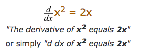 Leibniz's notationIn this form, we write dx instead of Δx heads towards 0. And the derivative of is commonly written as: ![]()