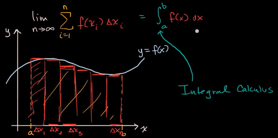 Integral calculus is a process to calculate the AREA between a function and the X-axis (or Y-axis).