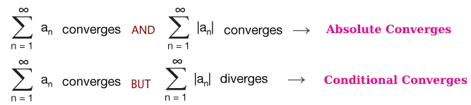 : if the series converges in BOTH Given form & Absolute form.Conditional Convergent