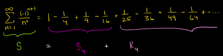 ▼Actual sum = Partial sum + Remainder: refer to Khan academy: Alternating series remainder